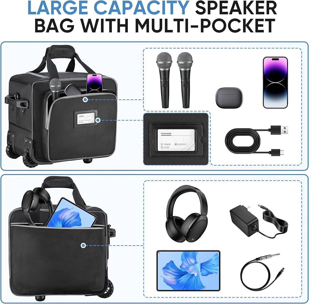 【Multi-pocket for Speaker Accessories】The rolling speaker bag that compatible with Bose S1 Pro has 2 large capacity external pockets that can easily store the speaker accessories. 2 internal mesh pockets provide additional storage for audio accessories
