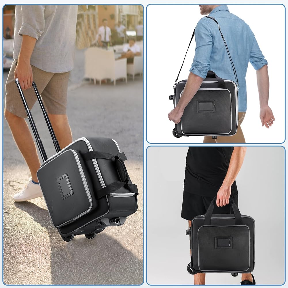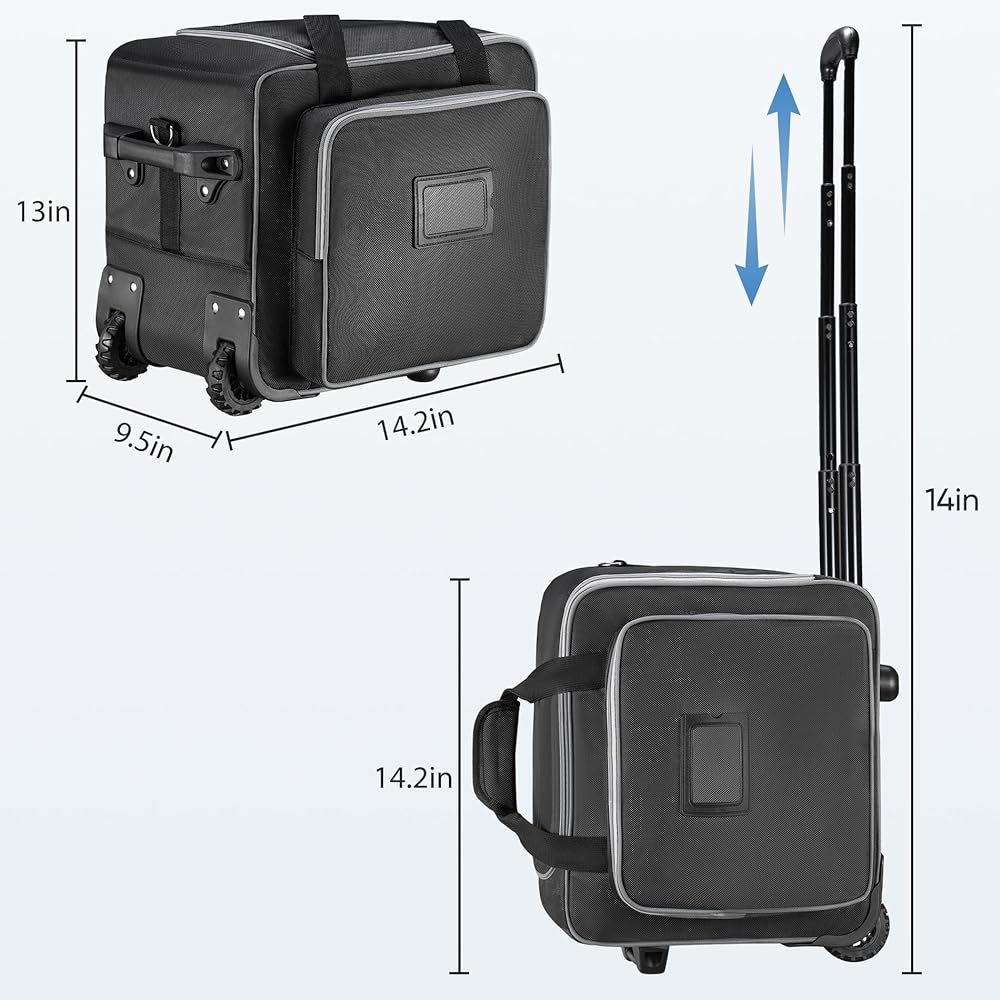 Speaker Bag with Wheels Compatible with Bose S1 Pro / S1 Pro+ / Partybox Encore Essential 2, Rolling Speaker Carrying Case Soft Padded with Multi-pocket & Fix Strap (14.2 * 9.5 * 13in)