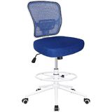 【Space Saving】 Armless mesh drafting chair allows your body closer to the desk while in use, while not in use you can easily slip the high desk chair under the desk for space saving. Perfectly choice for work, home or other small space.