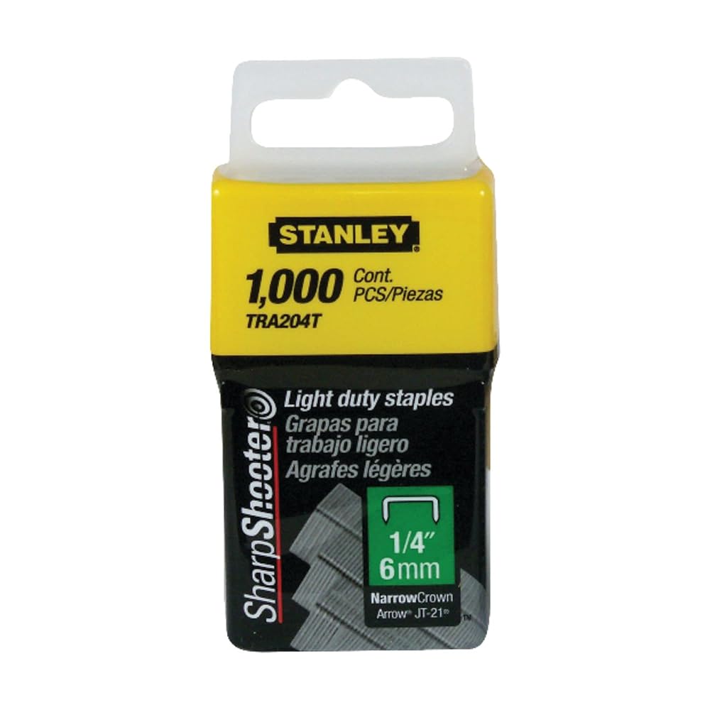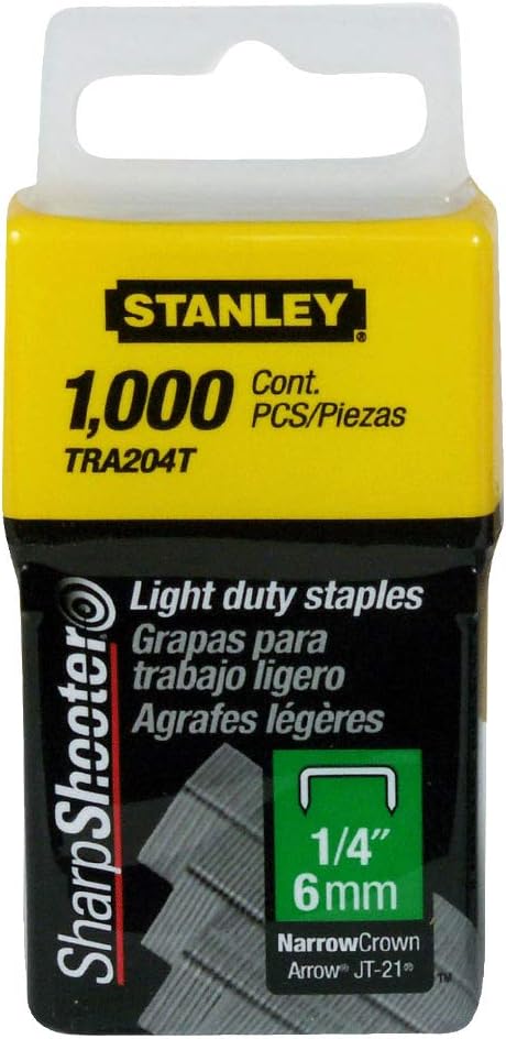 The Stanley TRA204T 1/4-Inch Light Duty Staples are for light duty household and crafting stapling jobs. These staples fit the Stanley TR45 and Arrow JT-21 staplers. This pack includes 1,000 staples.