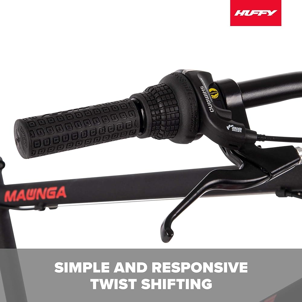 Promptly draw on 21 speeds on-demand for uphill climbing, downhill riding, or pure acceleration with the indexed Shimano TZ-31 rear derailleur and micro-shift twist shifter; suspension fork absorbs bumps for a better ride