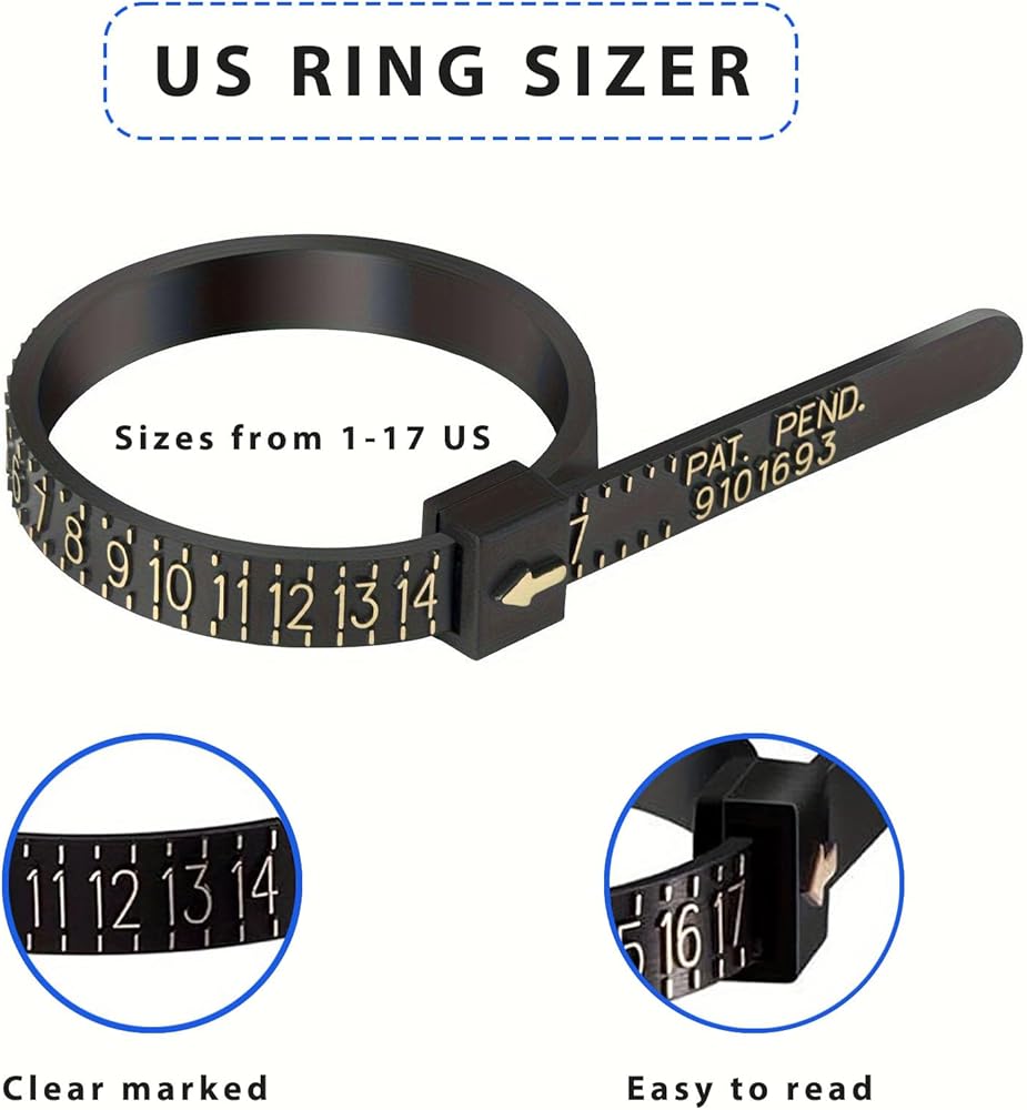 • 💞Easy to Use: This ring sizer is designed for simplicity and ease of use. Simply slip it onto your finger and adjust for a comfortable fit, then read off the size. Note: Ensure that it slips over the joints of the finger smoothly.