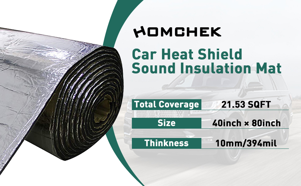 HOMCHEK 10mm 21.53sqft 40inch x 80inch Automotive Heat Shield Mat Sound Deadener Mat Noise & Dampening Heat Insulation Mat Application for Car Hood Dynamat Ceiling Door