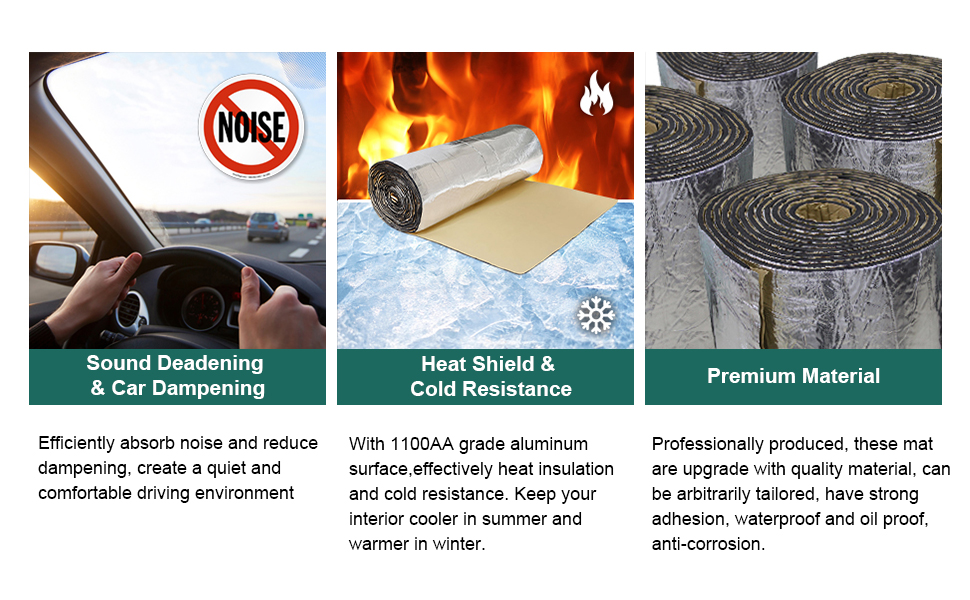 【Sound Insulation】This sound deadener mat has the same characteristics and excellent noise insulator properties as rubber foam. It absolutely doesn't absorb water & has no odor unlike polyurethane foam. It has a very low weight, oil and petrol resistant. Good sound insulation provides you with excellent comfort during high-speed driving.