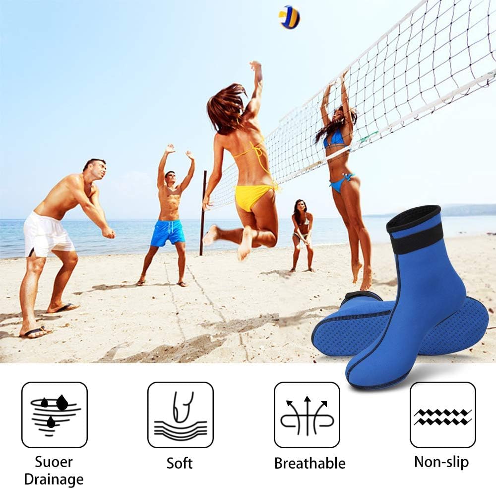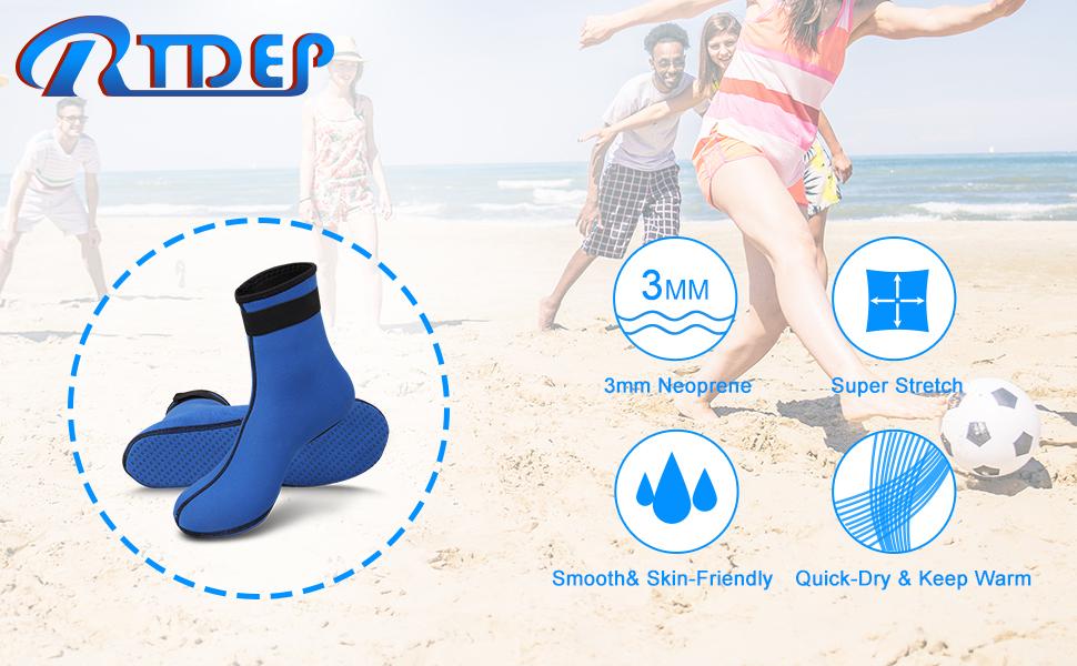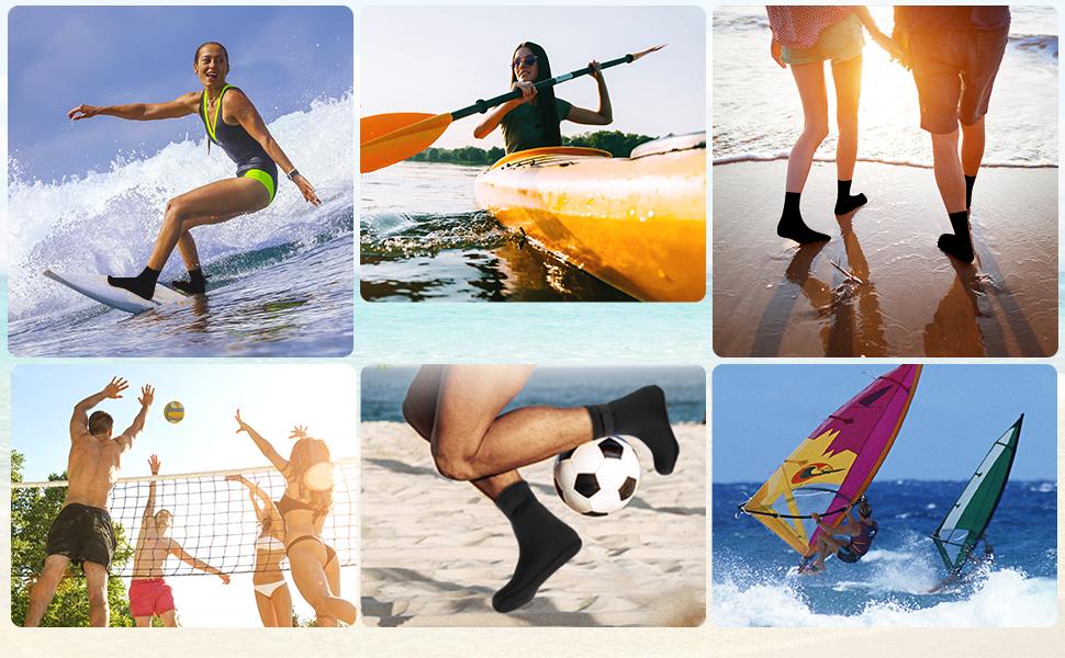 【Water Resistant & Warm】It is made of 3mm neoprene rubber, which is thick and soft, which can slow down the speed of water entry and play a water-resistant effect. Can provide a great warming effect when you swim and dive.(Note:Neoprene sock isn't a completely water-resistant product, but a diving equipment to match wetsuits)