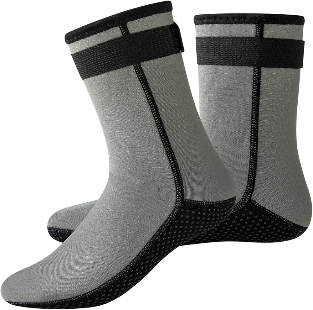 COMFORTABLE FIT: The soft and stretch 3MM neoprene materials of our diving socks can give you flexibility and a comfortable fit, which you have less restrictions and less feet fatigue during diving. Velcro strap design for a snug fit and all seams of our diving socks were glued and blind stitched, which ensure minimal water entry and keep the socks stay in place tightly.