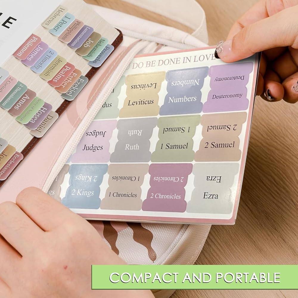 The bible tabs for women study bible are available in bohemian/morandi/sunset themes, adding a fashionable element to the bible and durability. The font is clear and bright. These bible tabs are self-adhesive, you simply peel and stick the bible index labels to your bible book, these labels can be easily removed and replaced.