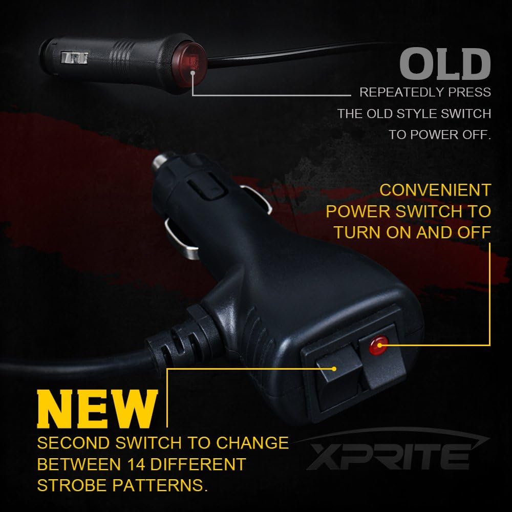 14 DIFFERENT PATTERNS: There are 14 different flashing strobe patterns with 2 switches, convenient power switch to turn on and off, second switch to change between 14 different strobe patterns. Also has a memory function to recall the last pattern used.