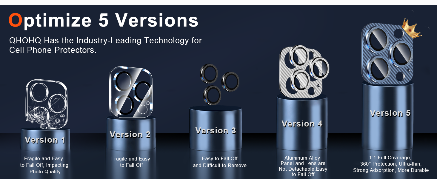 [4th Generation Upgraded Protection]: The camera protector uses adhesive imported from South Korea and has been upgraded to the 4th generation integrated version, with 10 times the super strong adsorption capacity, making camera cover not easy to fall off. The highly precise cutout and full fit structure to ensure that the lens film does not have any extra bump, matched with the original colors of the phone and enhancing cell phone aesthetics.