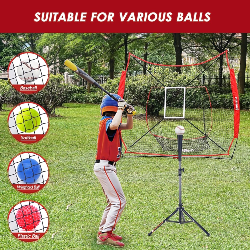 Baseball Training Equipment includes Baseball Tee for Hitting Baseball Batting Tee Softball tee, Large Ball Caddy, Baseball Net and Baseball Net Set Batting Hitting Practice for Kids Adults Portable Outdoor&Indoor Use