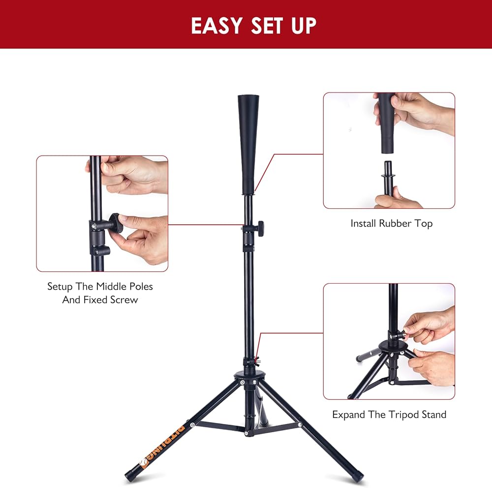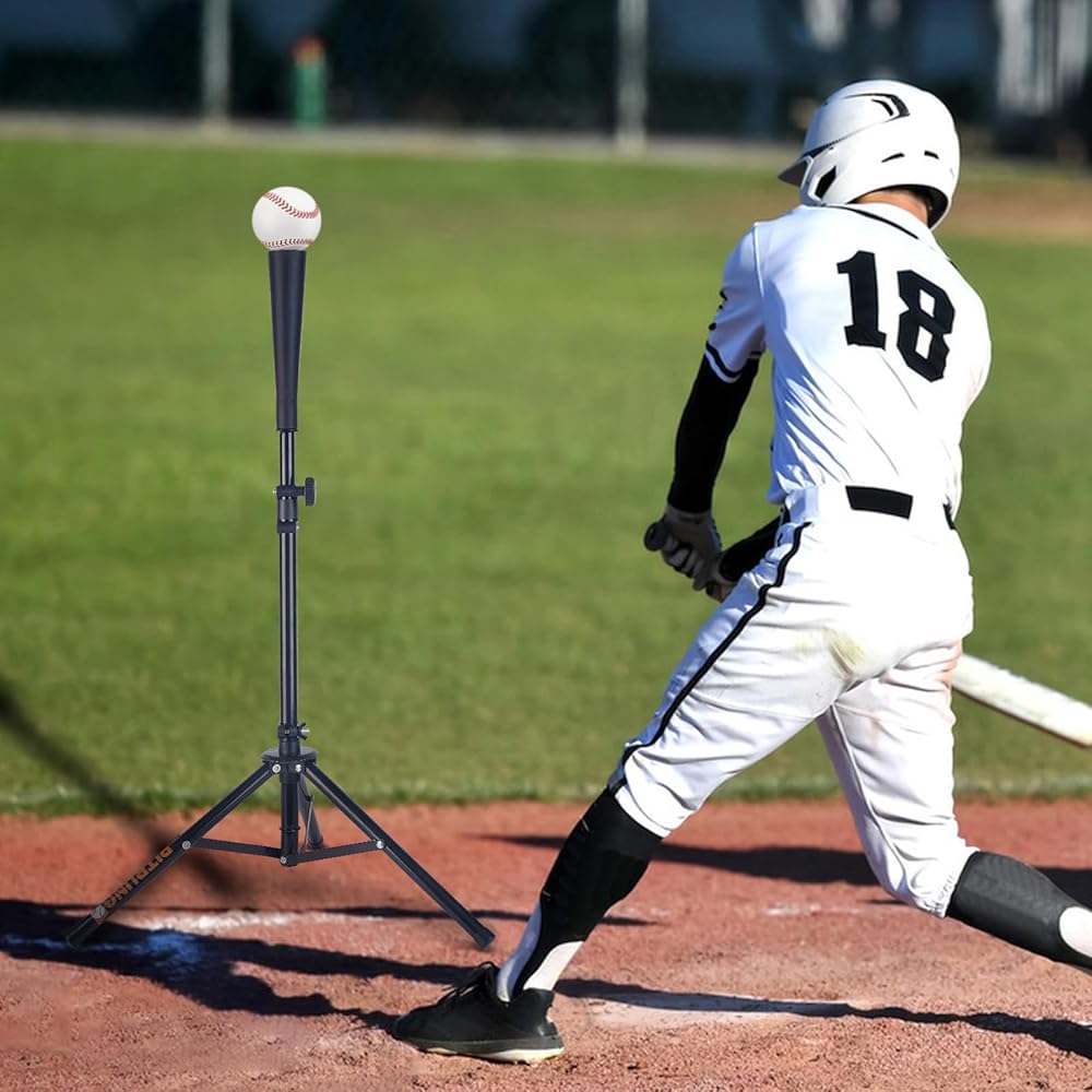 🥎⚾【Durable and Stable】 With a high-quality solid steel tube frames and solid steel tube frames, the tee can withstand all sorts of weather, and serve your long-lasting batting hitting training. The cleverly designed tripod configuration makes it stand stable on all sorts of surfaces, ensures that the baseball tee don't move or fall down when you hit it, with plastic legs provide grip on any surface indoor or out, serve your long lasting batting training.