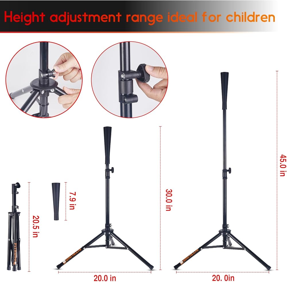 ⚾🥎【Easy Adjustable Heights】 Legs of this batting tee can be extended up to 20'', the height can be adjusted from 30'' to 45'', thus well accommodating any strike zone and suits for the training needs of players of all ages and levels.