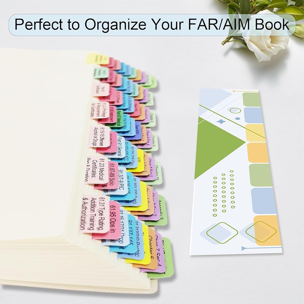 FAR/AIM 2025 Index Tabs for Private Pilot (with No Book), 80 PCS Color-Coded & Laminated Tabs, with Alignment Guide & Bookmark, Tear-Resistant and Waterproof
