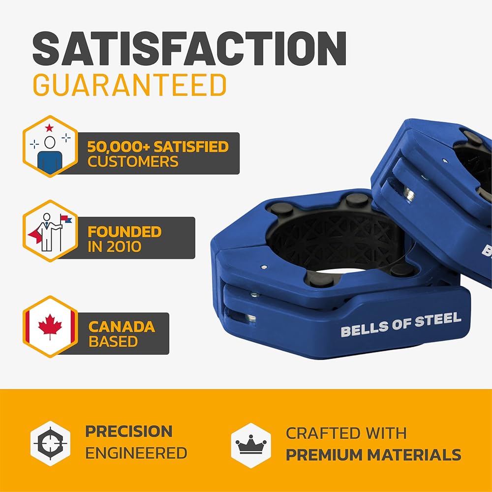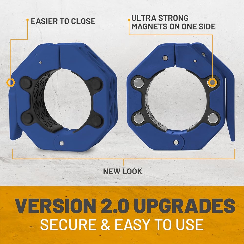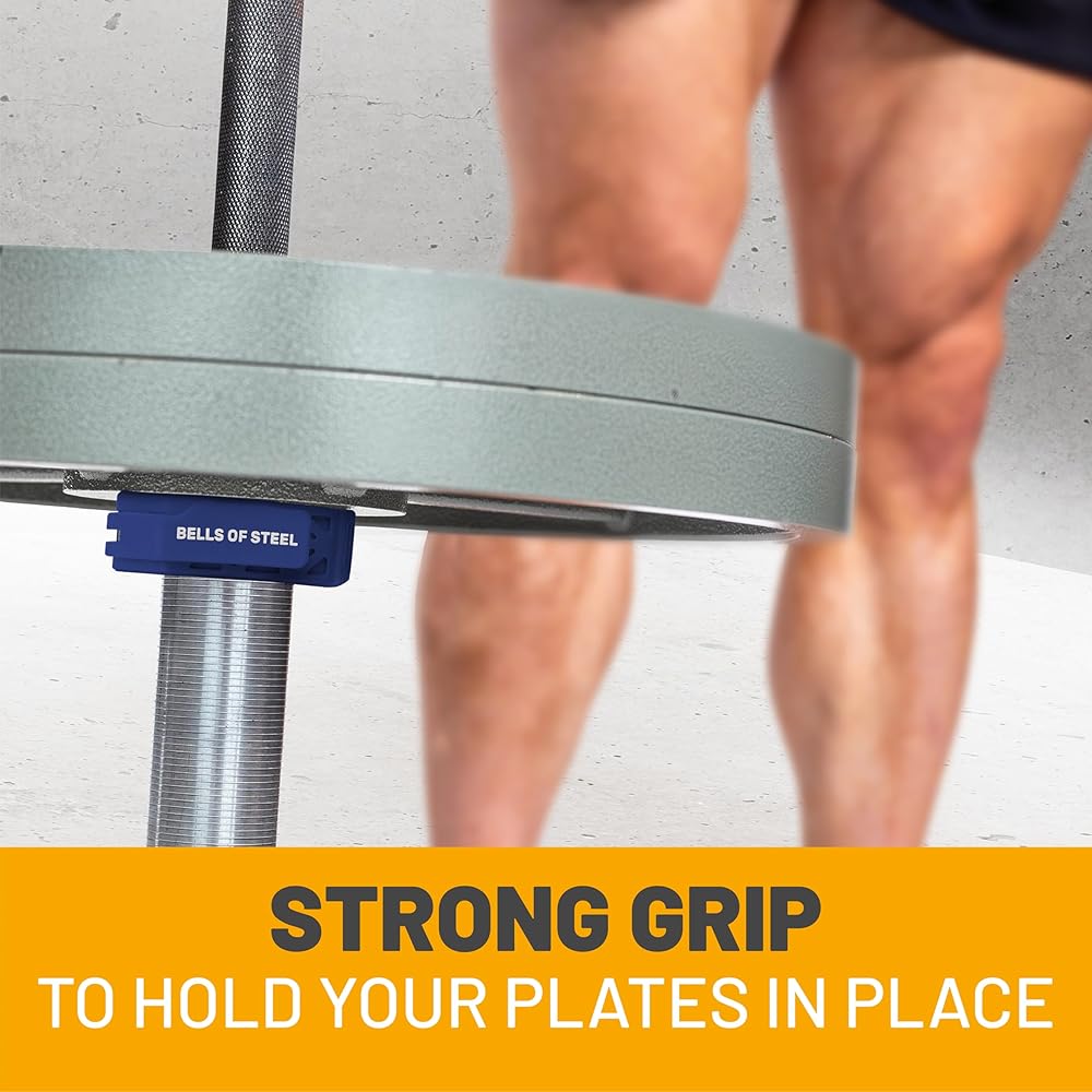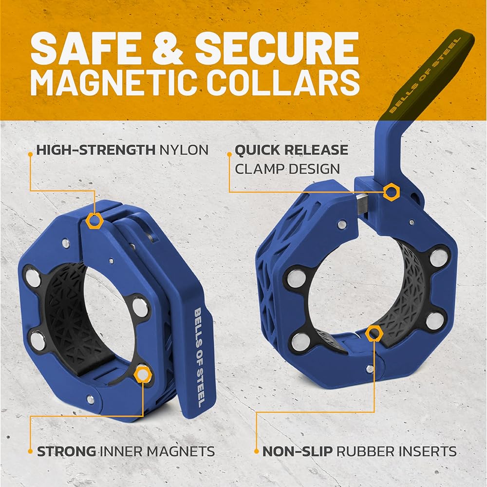 Magnetic Barbell Collars [Bells of Steel] Version 2.0 Premium Weight Bar Clamps, Quick Release Barbell Clips, Olympic Barbell Clamps, High-Strength Nylon Gym Clips, Pair, Blue