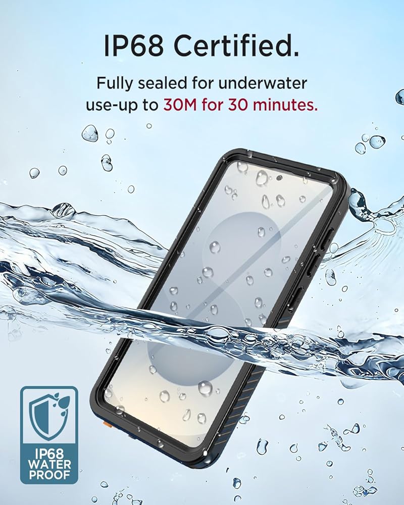 【IP68 Waterproof】Our waterproof case for S24 Plus adopts IP68 grade water-resistant material to protect your phone from rain, snow, dust and dirt. The non-slip grooves on both sides are designed for a tighter grip. Worry free to take your Galaxy S24 Plus phone while swimming, surfing, diving, taking photos or videos underwater. (It's best to test it if your Samsung S24 Plus case waterproof has been well installation before taking it into water.)
