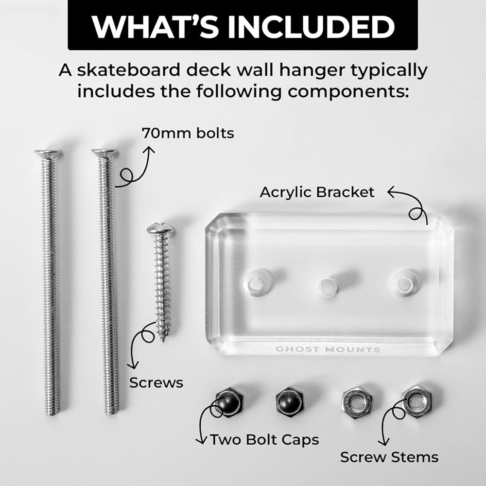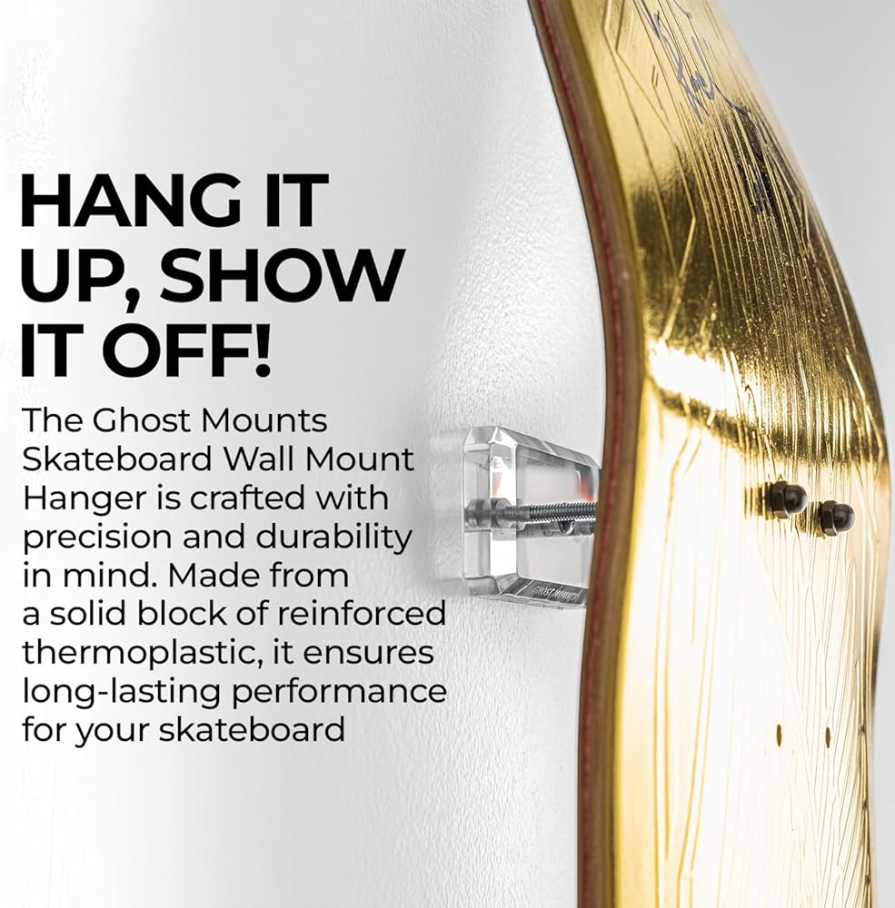 Elevate Your Display: With Ghost Mounts' skate deck wall mount, achieve a modern, secure, and stylish showcase for your skateboards. It provides a sleek, floating effect that allows you to store and display your decks with confidence and style.