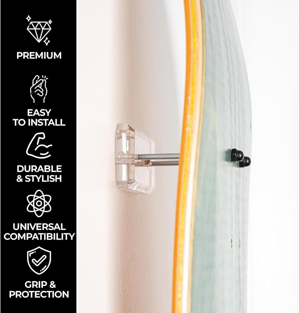 Premium Quality Craftsmanship: Unlike injection molded plastic, our skateboard deck wall mount are laser-cut from high-quality acrylic. This ensures precise and flawless edges, eliminating any inherent defect lines often found in the molding process.