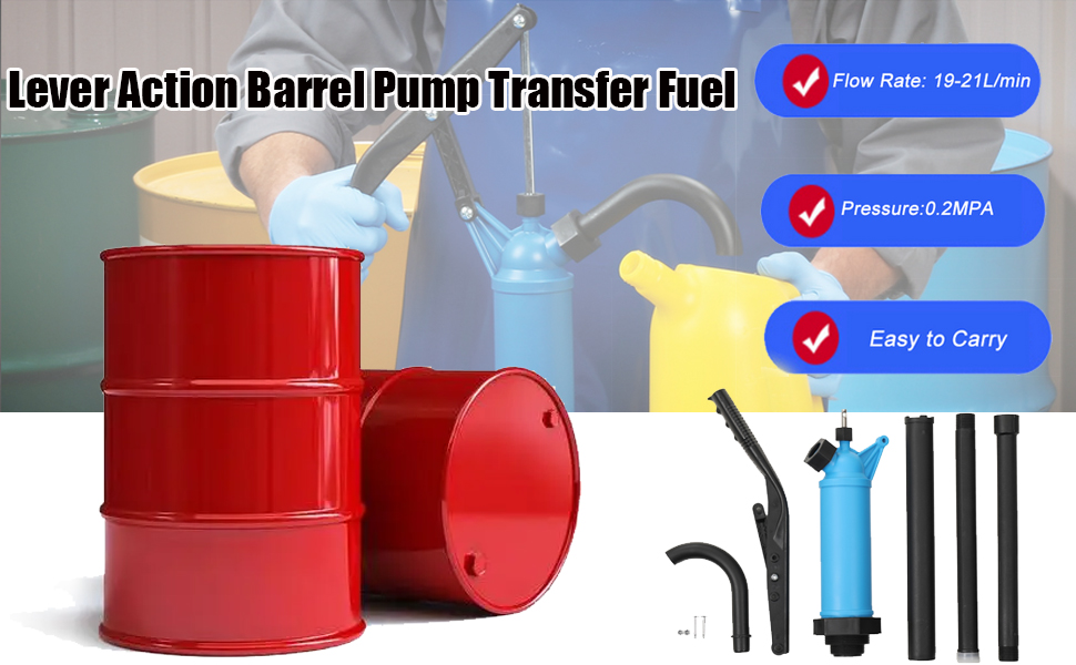 Easy To Operate: This Barrel Fuel Pump can be operated by simply pressing the handle. Its labor-saving lever design and ergonomic non-slip handle allow you to press it 55 times per minute, which is very easy and efficient.