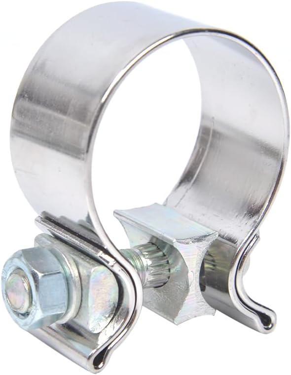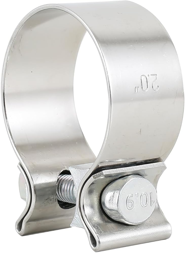 This exhaust tip narrow clamp has a Grade 10.9 bolt and it can seal well, creating over a ton of force without crushing pipes. This results in a strong and serviceable joint with working torque in the 40-50 ft-lbs range.