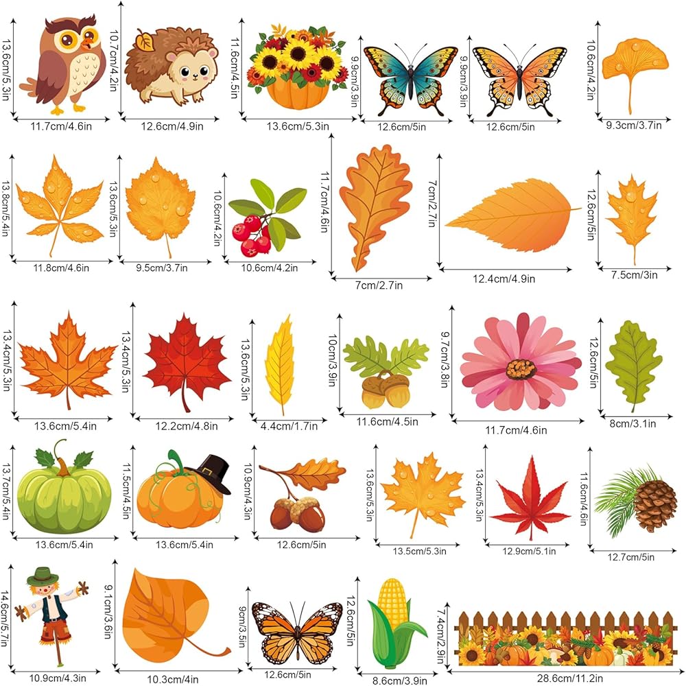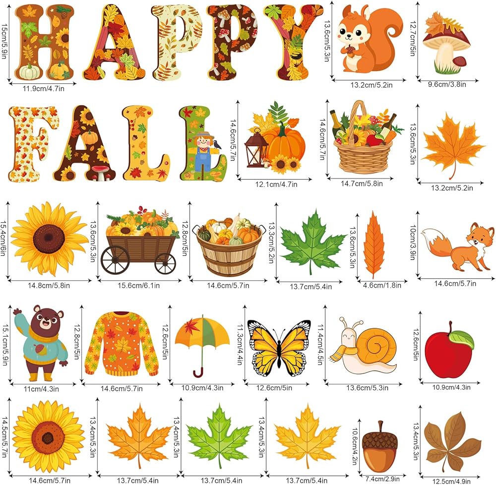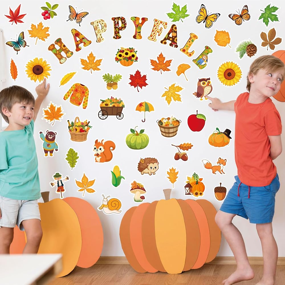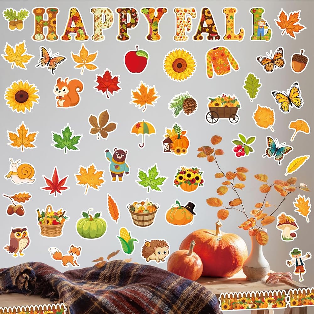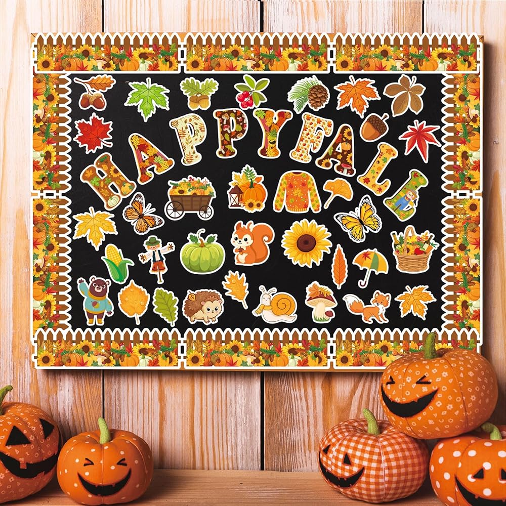 80Pcs Autumn Cutouts Set for Bulletin Board Decor with 160Pcs Glue Points Autumn Pumpkin Maple Leaves Cut-Outs for School Classroom Door Wall Decoration Supplies Favors (Happy Fall)