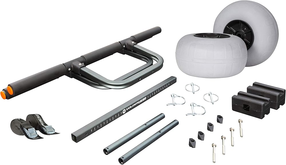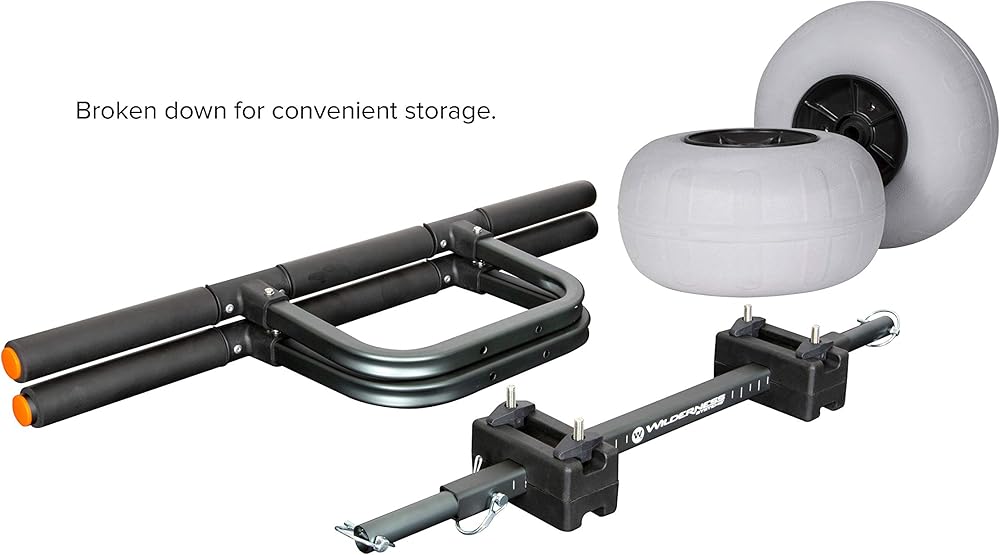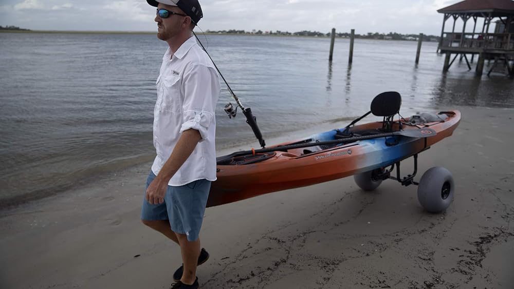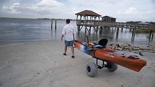 Fishing kayak owners and paddlers with heavy loads now have an award-winning product to transport their kayak. This workhorse cart will transport up to 330 pounds with ease and comes with balloon-style beach wheels that will never go flat. All-terrain wheels (sold separately) can be swapped onto the same frame and increase the carrying capacity to 450 pounds. It is also easy to load and unload the kayak - no kickstands or scupper posts required - and two included security straps prevent the kayak from slipping. Cart is collapsible for storage and can fit into larger kayak hatches. The heavy duty cart is constructed of marine-grade, High-strength, Heat-Treated aluminum alloy for superior strength.