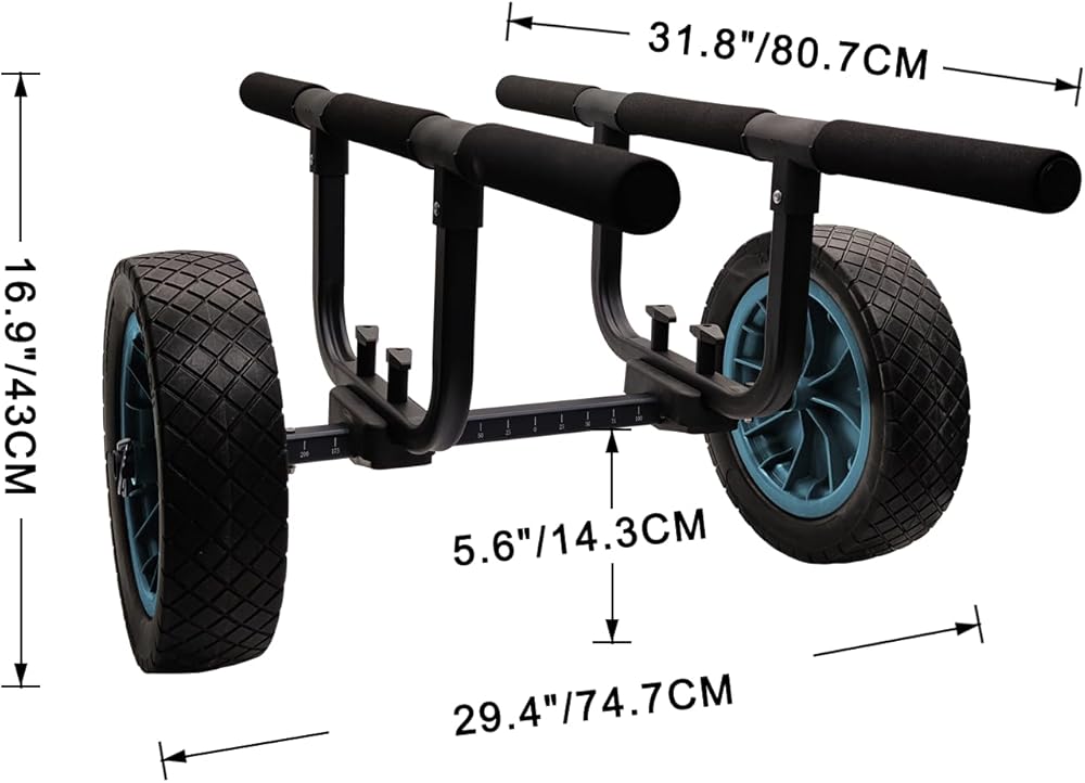 🚣【Universal Kayak Cart】 This kayak cart support bar length is 31.8inch, makes it is universal for different width of kayaks .