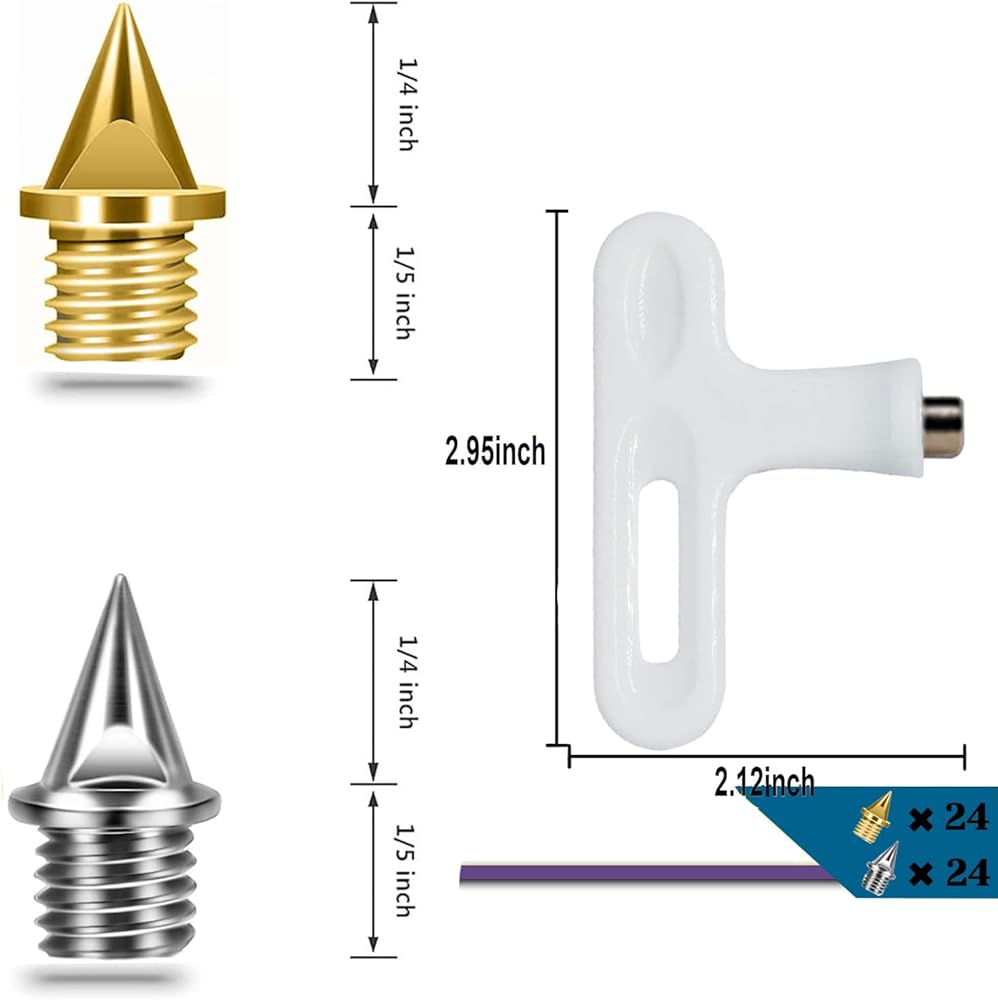 【Size】: 1/4 inch (6.35 mm) in length, tapered and needle-shaped, the general size for most running shoes to use. Easy to match with most spikes track shoes, let you have a better performance on the field