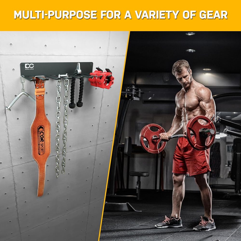 [ Versatile Use Storage ] Each hook holds up to 44 lbs on this sturdy fitness accessories storage rack.Angled lip on the end to keep your exercise gear secure and in place. Easily hang your lifting belts, chains, jump ropes, resistance bands.