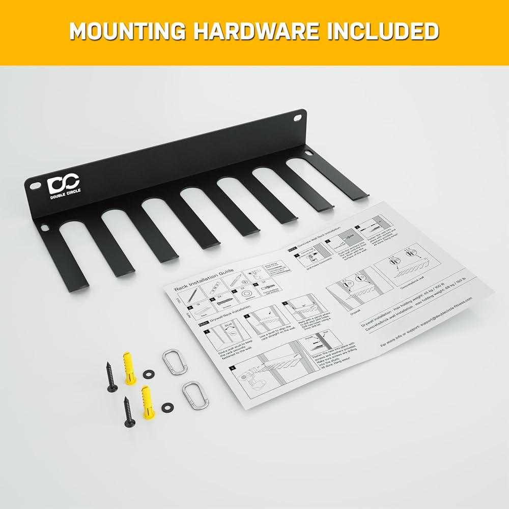 [ Easy Installation Storage Rack] This home gym storage rack comes with the wall mounting hardware, including (2) 1.5-inch screws, (2) washers, (2) masonry anchors, and installation manual. Screw holes spaced 16 Inches to fit standard wall studs.
