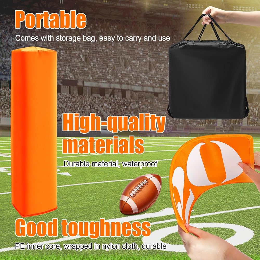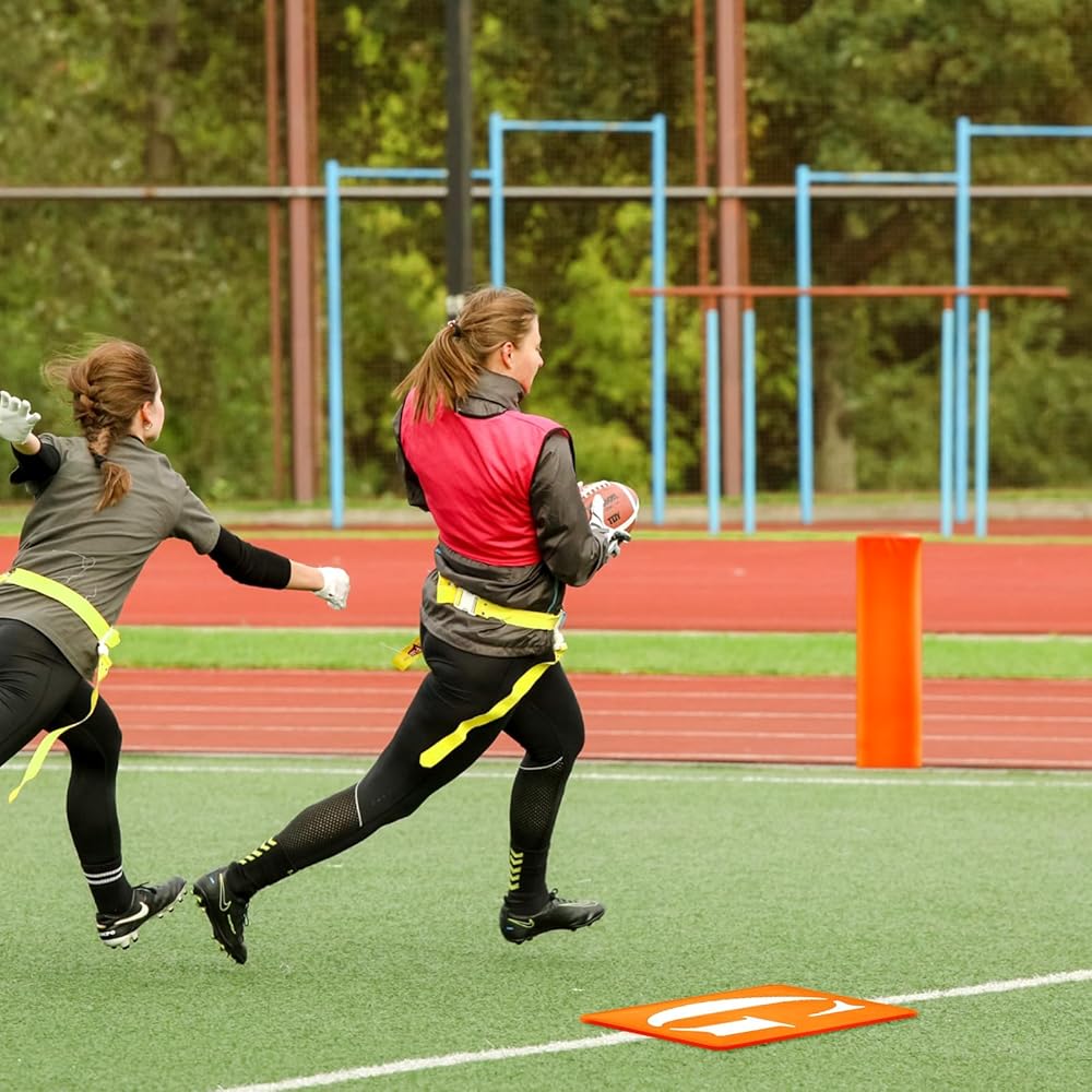 Proper Size to Use: the football field pylons are about 18 x 4 x 4 inches/ 45 x 10 x 10 cm each, the football markers for yard are about 12 x 12 inches/ 30 x 30 cm each, suitable for official league and recreational football