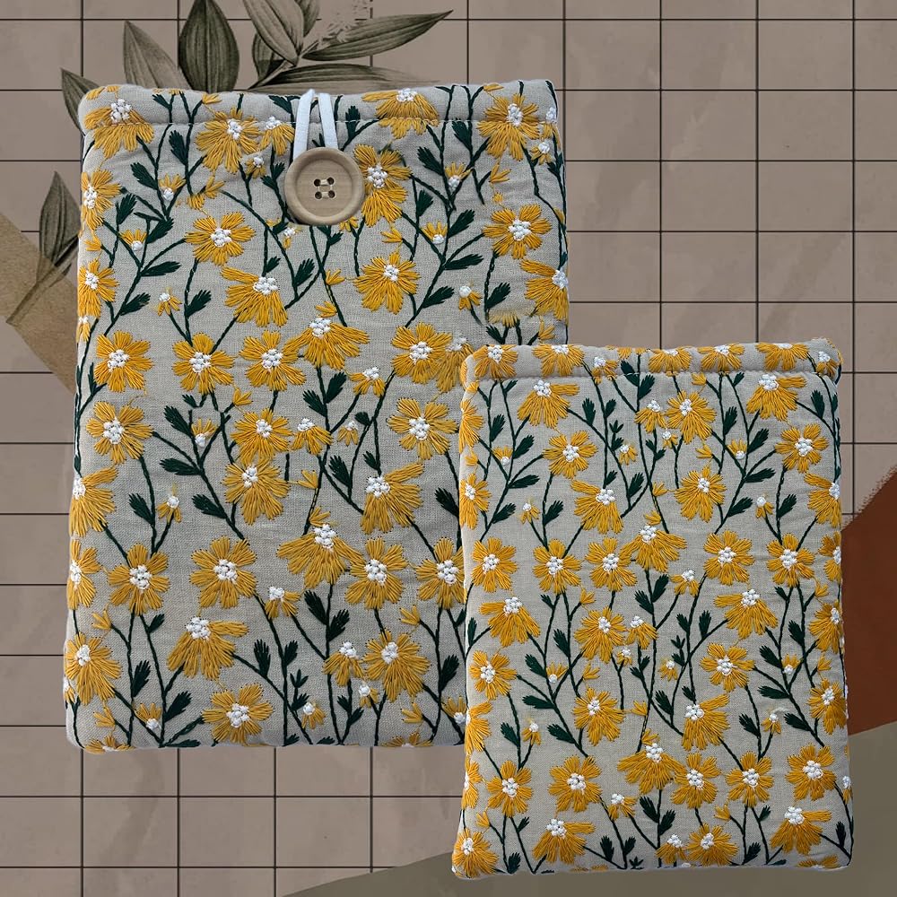 Embroidered Daisy Design : Our book cover protector stands out with its exquisite hand-embroidered daisy pattern on both sides. The layered embroidery feels soft and comfortable to the touch, and the vibrant colors won't fade. Our unique pattern designs are sure to bring joy and surprise to all book lovers.