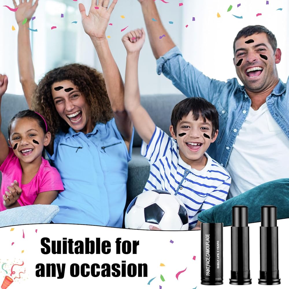 Wide Application: The football face paint stick can be used for baseball and softball or for Halloween face and body makeup. Create the perfect look for everyday and special occasions such as clown, cosplay, birthdays, theater shows, superhero designs, themed costumes, stage performances, etc.