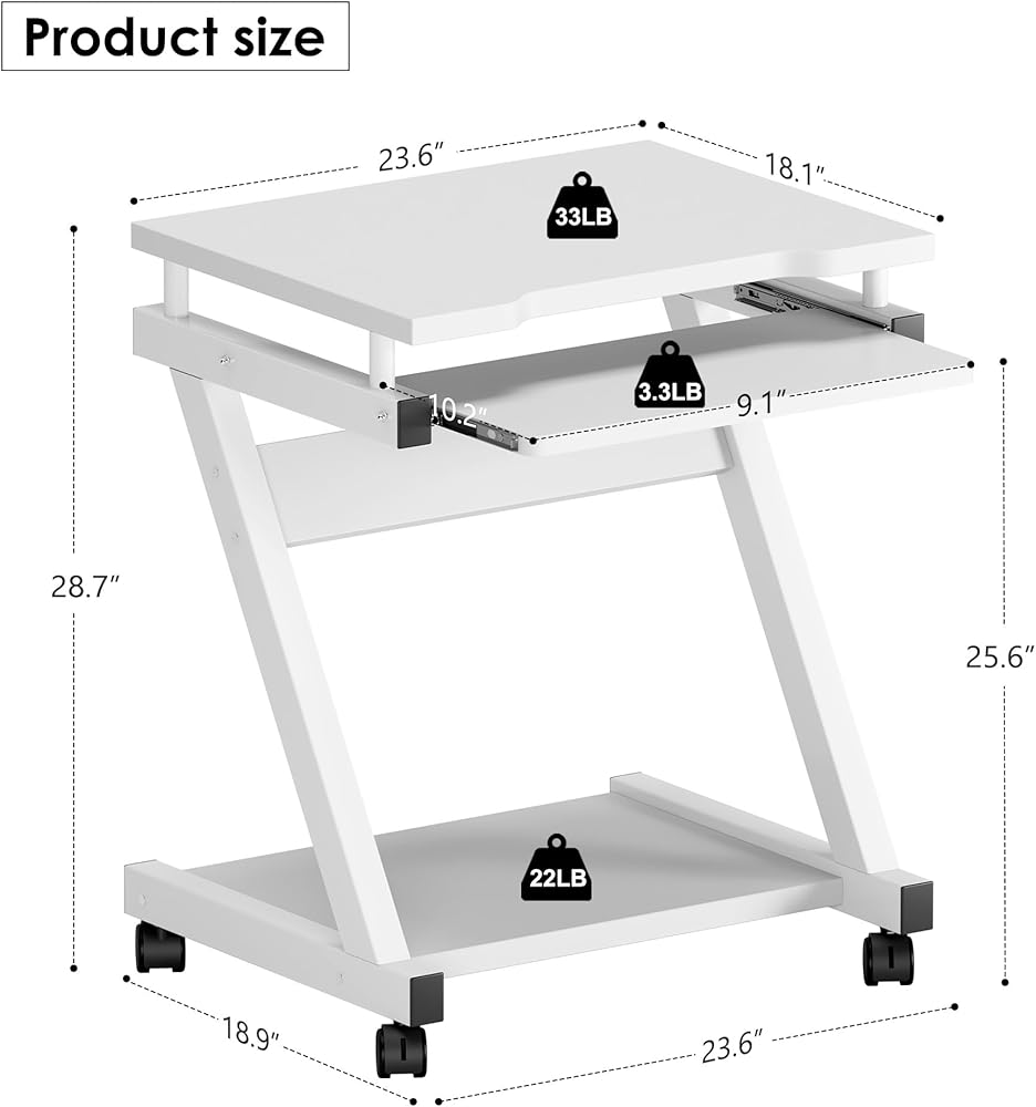 ▶Laptop Table Size: L23.6 * W18.9 * H28.7 Inch. Lap table weights about 24.3lbs, max weight capacity of the desktop is about 60 lbs.