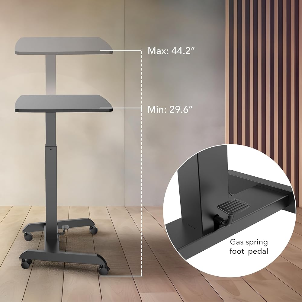 SMOOTH PNEUMATIC SPRINGS: The height of our laptop desk is adjustable from 29.6" to 44.2", with a simple press of the foot pedal.