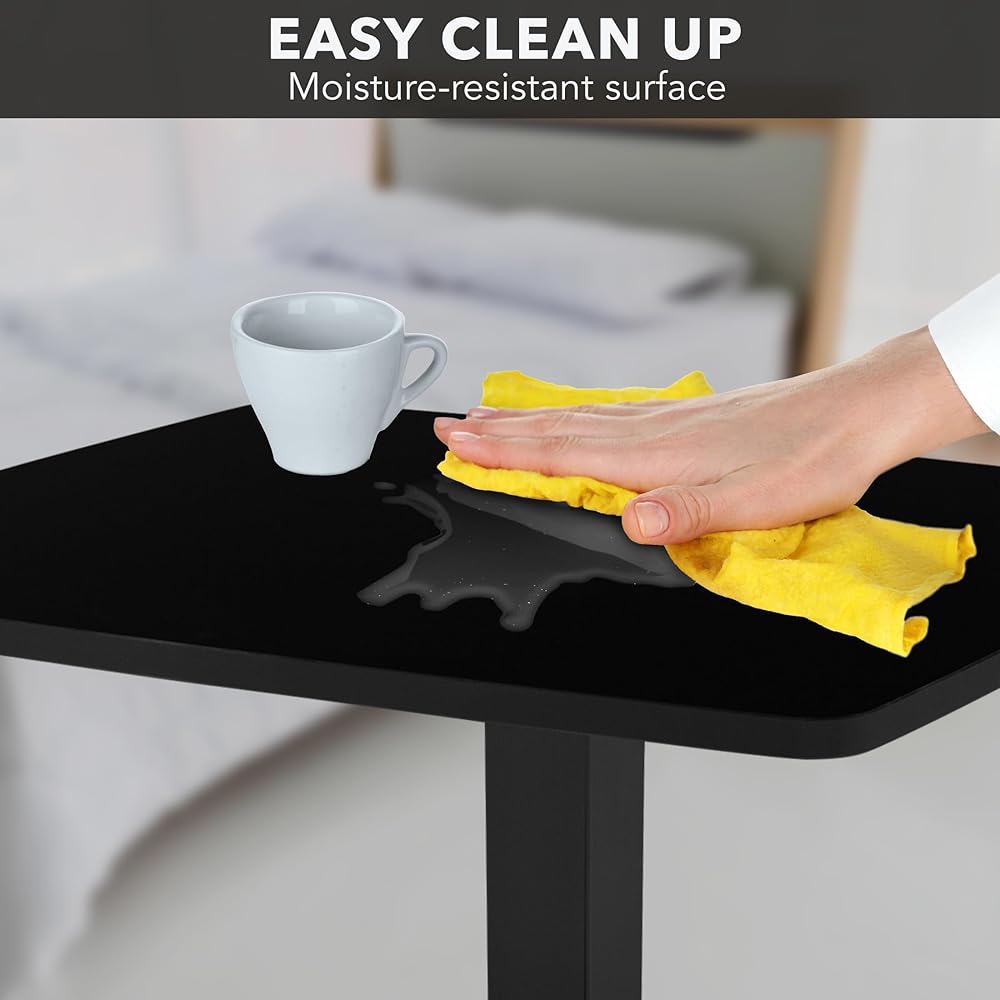 LARGE SPACE SAVING SURFACE: The large 23.6" x 20.5" surface area on our adjustable laptop desk cart provides generous space for a laptop, keyboard, and mouse. The white finish is smooth, heavy-duty, and moisture resistant (TSCA Title VI compliant).