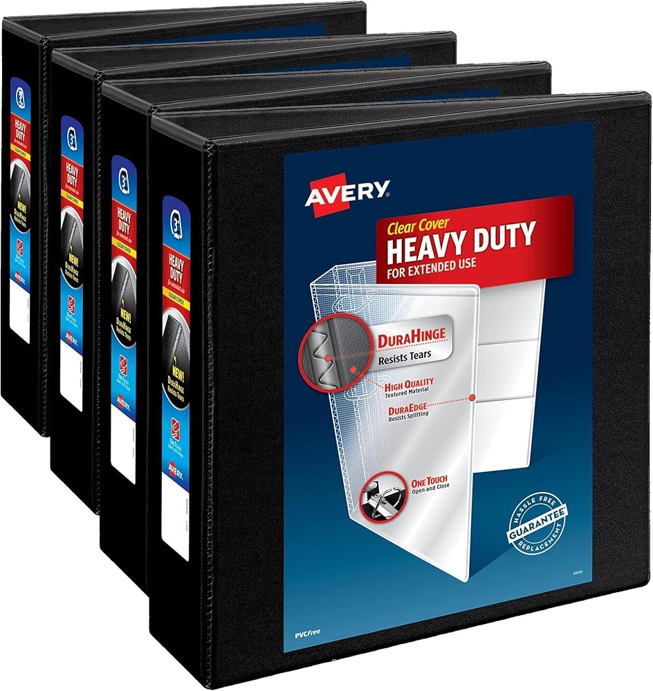 Heavy-Duty binders have a DuraHinge design that's stronger, lasts longer and resists tearing, while the DuraEdge feature makes the sides and top more pliable to resist splitting