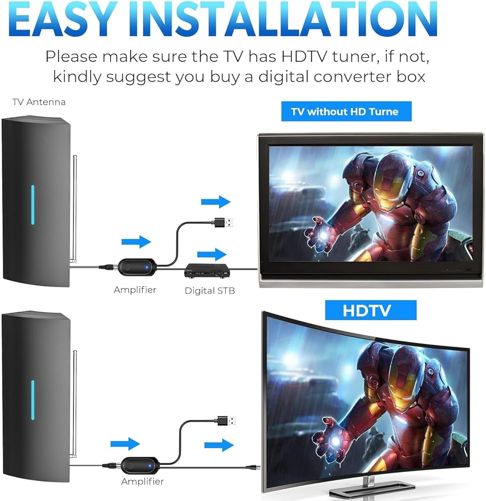 🚀【4K HD TV Picture Quality】: This smart tv antenna uses a proprietary adaptive enhanced signal amplifier with a built-in smart IC chip. With a powerful signal amplifier integrated with the latest generation chip, the improved 4K antenna picture quality is improved by 80%, allowing you to enjoy clear picture quality, vivid colors, and low noise. It satisfies the double needs of vision and hearing.