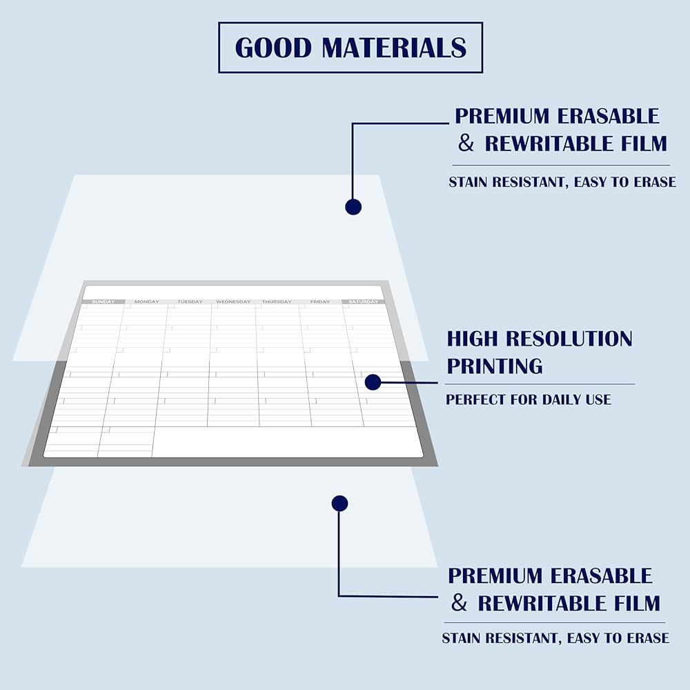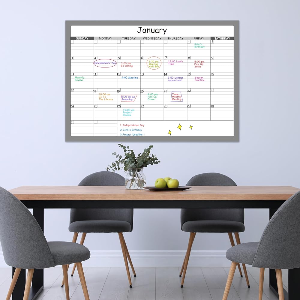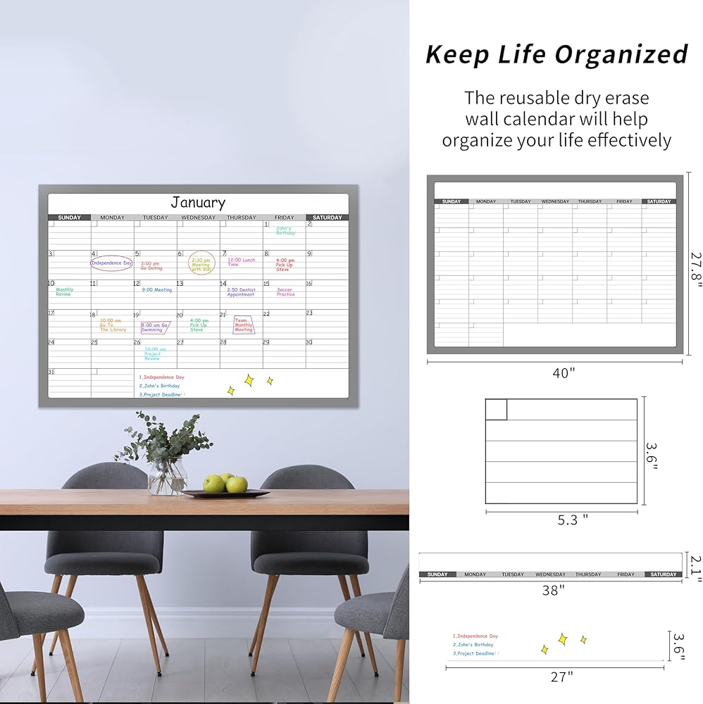 Large Dry Erase Calendar - Undated 1 Monthly Wall Calendar Laminated, 40" x 28", Blank Reusable Calendar Planner with Large Daily Boxes, Notes, Stickers, Great for Home, Office, Classroom, Grey