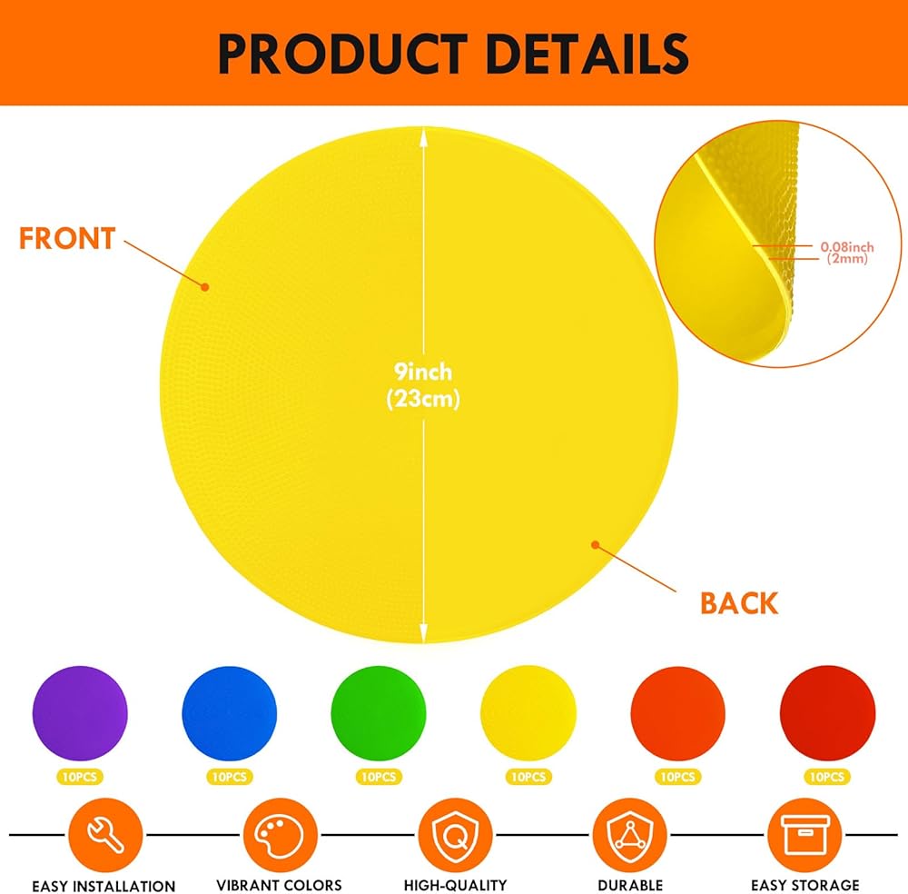 Ensure safety and stability during activities with the non-slip floor dots on these markers. Feel confident as you conduct classroom exercises or engage in fast-paced games