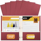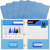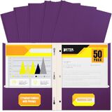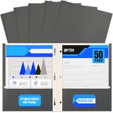 Better Office Products Black Paper 2 Pocket Folders with Prongs, 50 Pack, Matte Texture, Letter Size Paper Folders, 50 Pack, with 3 Metal Prong Fastener Clips, Black