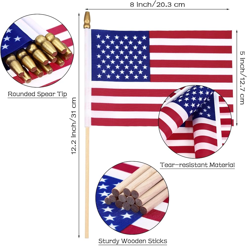 Wide Range of Applications: our small flags on sticks can be applied in various occasions, like parades, festival Events, party, Independence Day and other activities, and can be nice decorations in your home