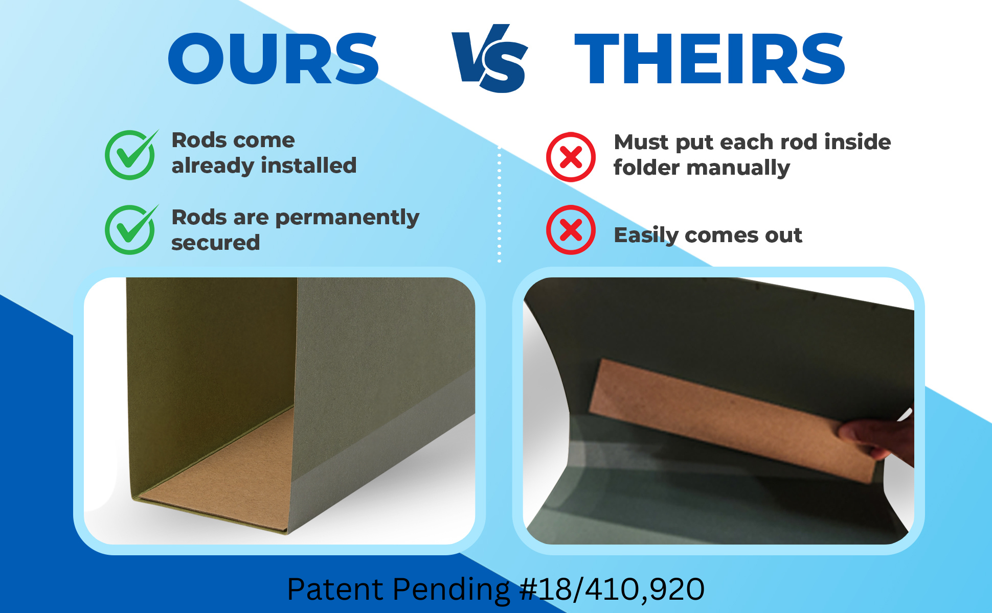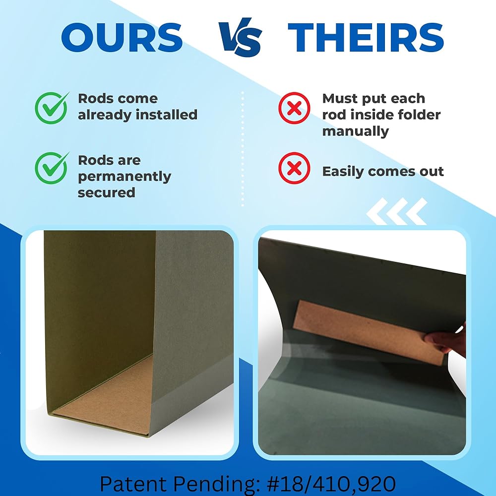 Pre-Installed Rods: Our box bottom hanging file folders come with pre-installed and securely fixed rods. Say goodbye to the hassle of setting up each rod and struggling to keep them in place.