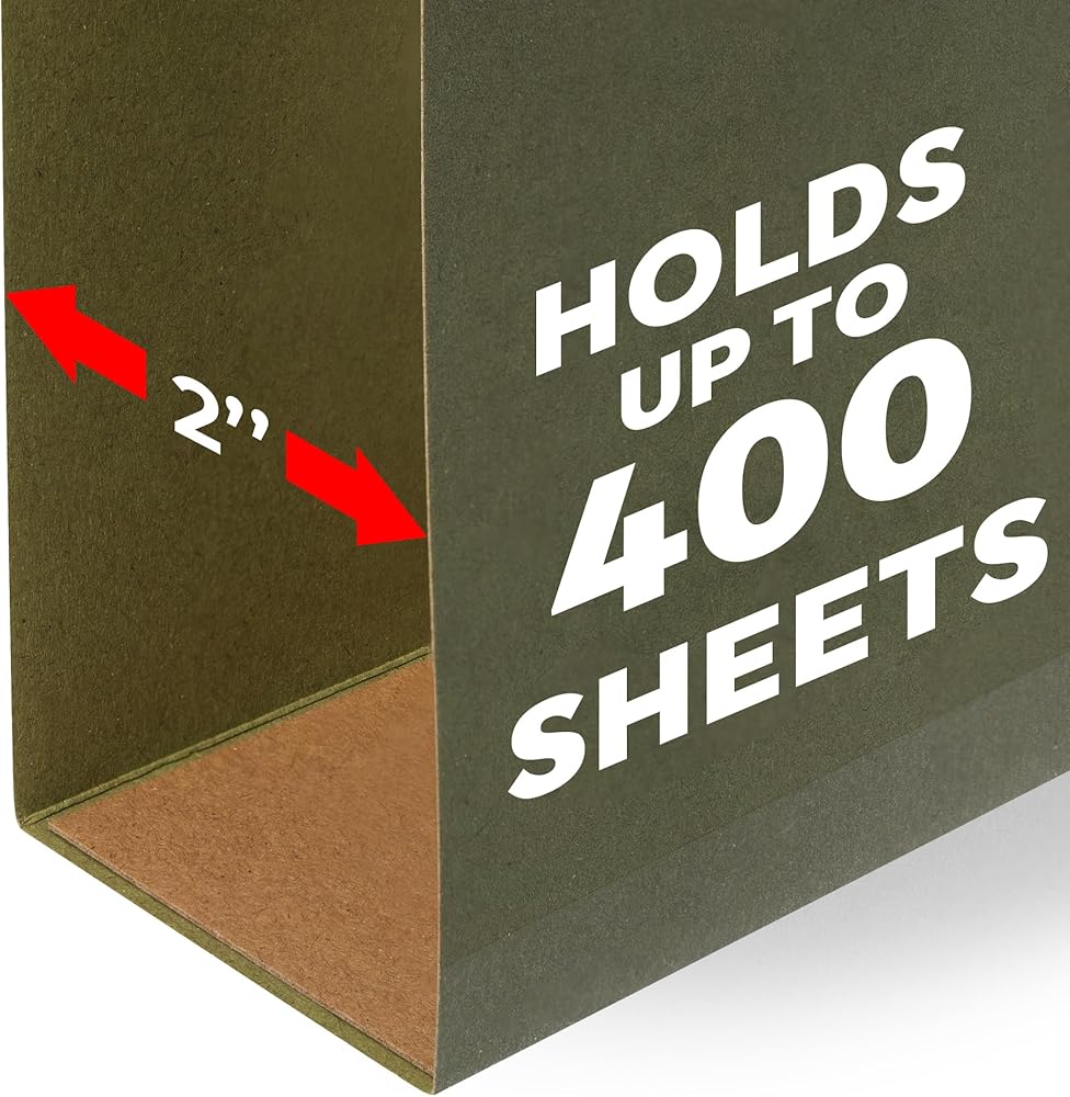 Expandable Design: Each expandable hanging file folders letter size expands by 2 inches, holding up to 400 sheets at once. Keep your documents safe and secure with our Letter Hanging File Folders. Our extra wide hanging file folders are the perfect solution for staying organized and finding what you need faster.