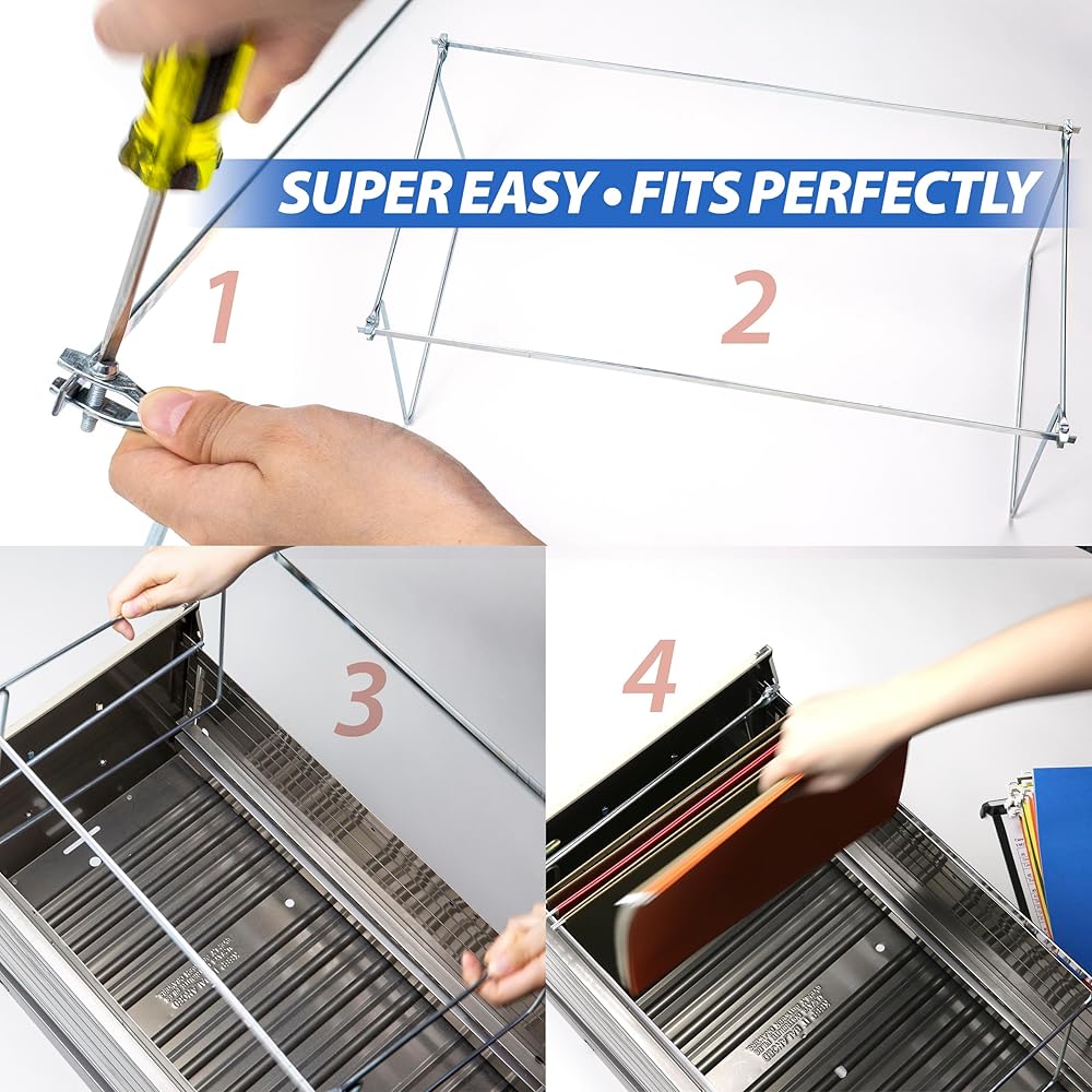 These hanging file frames hold letter size hanging file folders securely in drawer. For home office file cabinets 24 inch to 27 inch; deep, holds file folders in drawer. Features breakaway notches every half inch for adjustment. Can break down from 27 inches to 24 inches. Made from heavy duty coated steel construction. Comes with 2 sets.