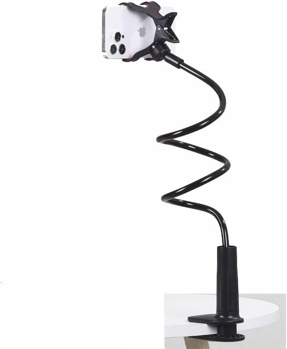 • Stable & Durable: The Gooseneck Cell Phone Stand Upgraded materials with arms made of ABS, PVC, and alloy, ensuring stability and resistance to breakage. The spiral-designed base provides enhanced stability and can securely clamp onto surfaces up to 2.95 inches thick.