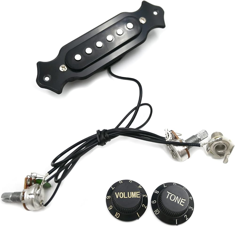 This is a fantastic pre-wired 6 string magnetic pickup harness that can be used with both acoustic and loopers, ready to be fitted to your cigar box guitar or other stringed instrument without soldering or worrying about wiring principles.