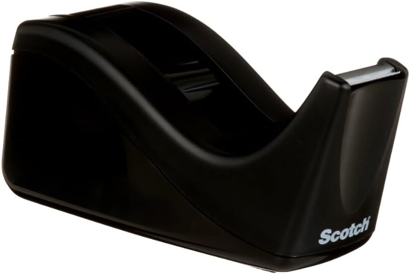 Scotch Desktop Office Tape Dispenser is a deluxe, black two tone desktop tape dispenser with a weighted base. The sleek wave design complements any décor. The weighted, non skid base is ideal for easy, one handed dispensing. It has an attached tape hub to prevent loss and a high quality cutting blade, designed to last for years. Dispenses standard tapes on a 1 in. core up to 3/4 in. wide and 1500 in. long. Scotch Tape Dispensers allow you to have your favorite tapes handy and ready to use!