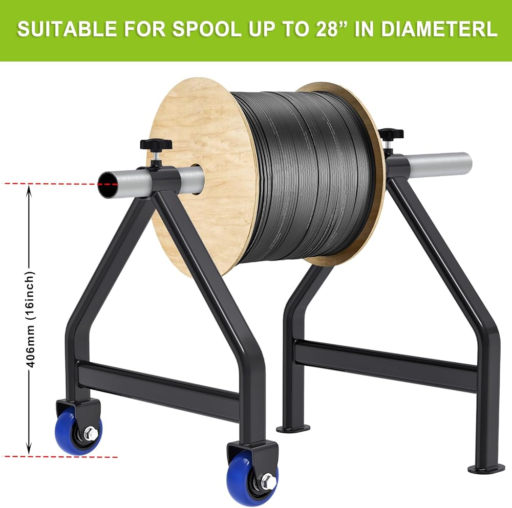 Fits Various Spool Sizes: Wire caddy can hold wire reels up to 28" in diameter, with a maximum weight capacity of 220 pounds.