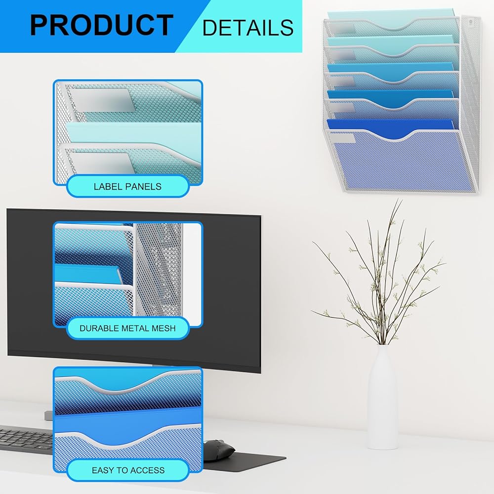 Get your papers, mail and stationery items in order by filing them tidily in our vertical mounted wall file holder.