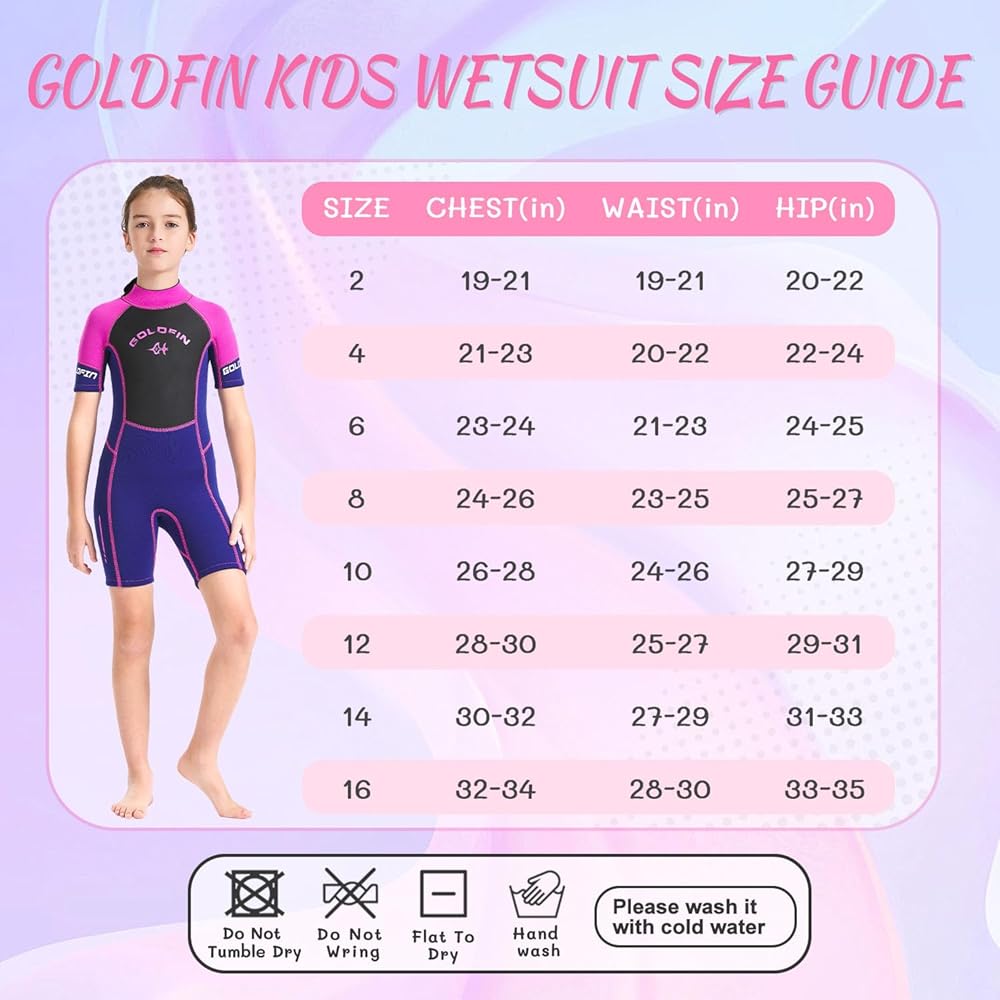[Tips] 30 days unconditional refund, 24 hours service. The 3mm neoprene kids wetsuits are worn suitable for 50℉- 67℉. Please do not wash clothes at high temperatures. It is very easy to clean, just rinse with cold water.